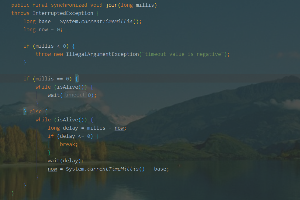 查看Thread源码可以知道Thread的join方法,底层使用的是Object的wait实现的,如下图:
