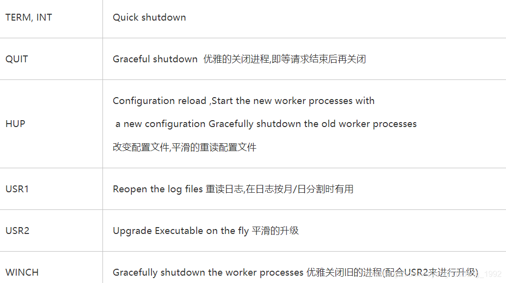 USR2:热升级nginx程序 WINCH:优雅的关闭相应的worker进程
