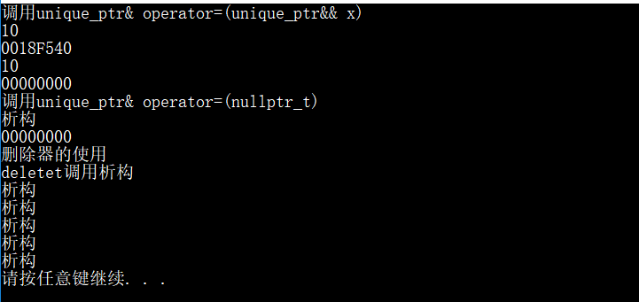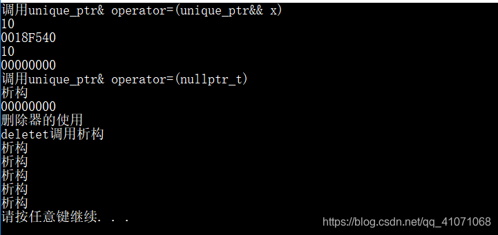 据我们自己定义的方法释放. 但shared_ptr删除器的使用更加方便了, 不像unique_ptr一样还需要在模板参数位置传入函数指针类