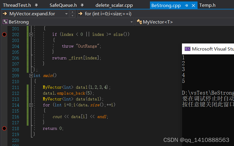 (2)迭代器的开始和结束、emplace_back、pop_back、size、empty、重载[]操作符