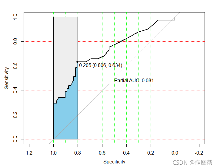 7.计算partial AUC选择关注(sp或se)一定范围的数据