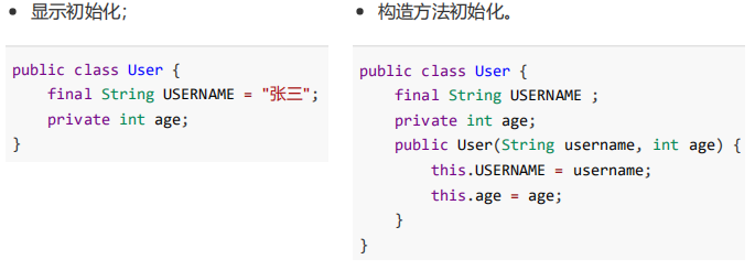 成员变量具有默认值,final修饰成员变量之后必须手动赋值,不会再给默认值了。