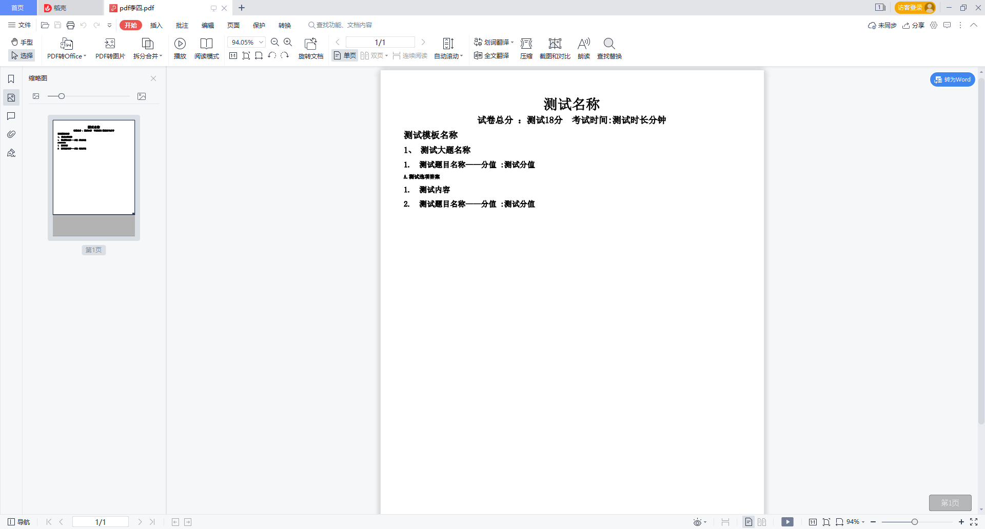 //转码试卷名称