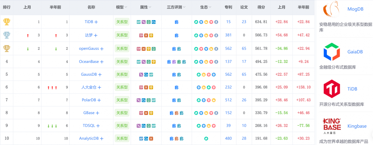 - 国产数据库流行度排名规则-墨天轮