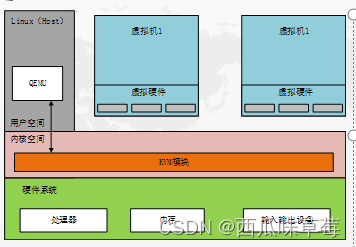 KVM是集成到Linux内核的Hypervisor,是X86架构且硬件支持虚拟化技术(Intel-VT或AMD-V)的Linux的全虚拟化解决方案。它是Linux的一个很小的模块,利用Linux做大量的事,如任务调度、内存管理与硬件设备交互等。准确来说,KVM是Linux kernel的一个模块。
