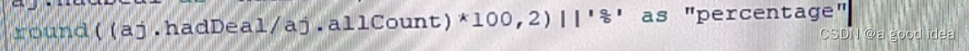求百分比 保留两位小数 版权声明:本文为weixin_40074861原创文章,遵循CC 4.0 BY-SA版权协议,转载请附上原文出处链接和本声明。原文链接:https://blog.csdn.net/weixin_40074861/article/details/127977356
