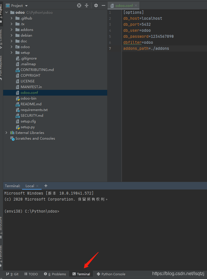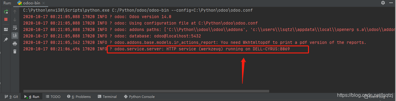 dbfilter=odoo是数据库的名称,运行后创建的数据库记得要一致,不然无法找到数据库