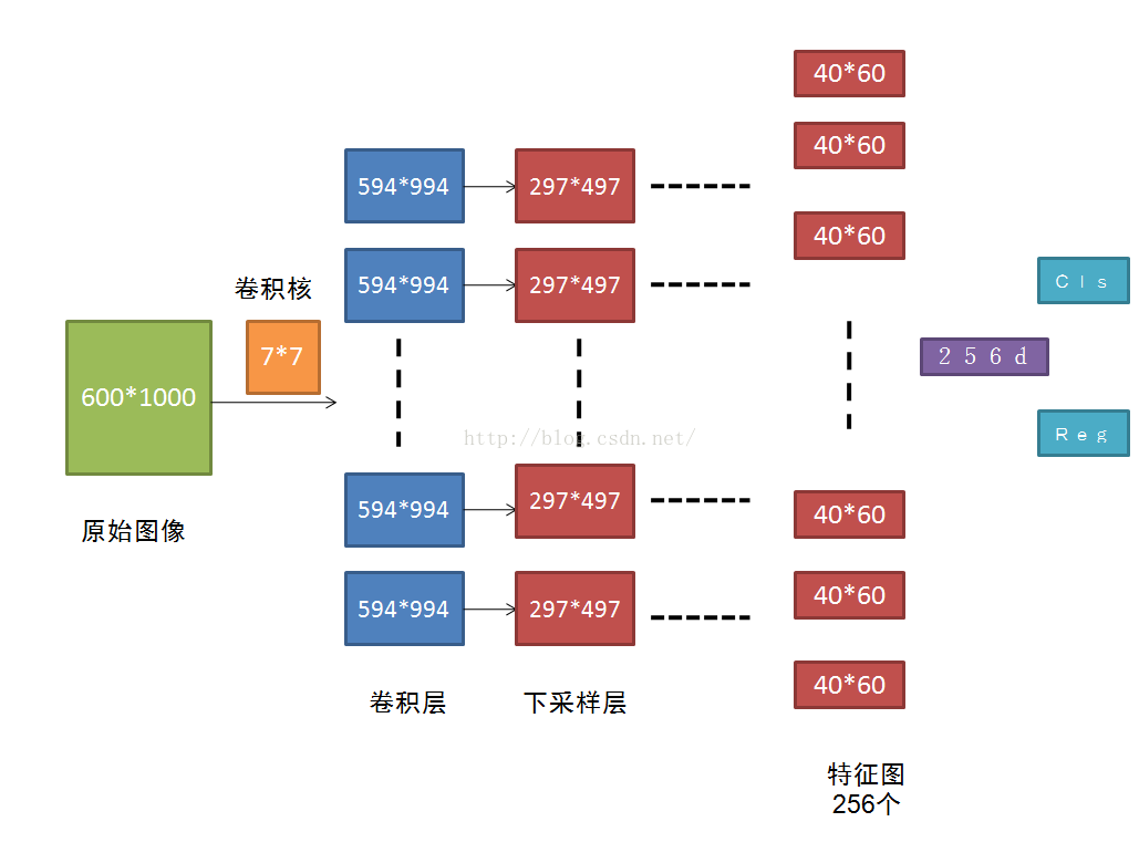 其中,RPN是全卷积神经网络,用于提取候选框;Fast R-CNN基于RPN提取的proposal检测并识别proposal中的目标。