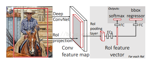 注意:Fast R-CNN的RegionProposal是在feature map之后做的,这样可以不用对所有的区域进行单独的CNN Forward步骤。