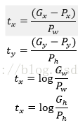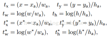 的确,这四个值应该是经过 Ground Truth 和Proposal计算得到的真正需要的平移量和尺度缩放