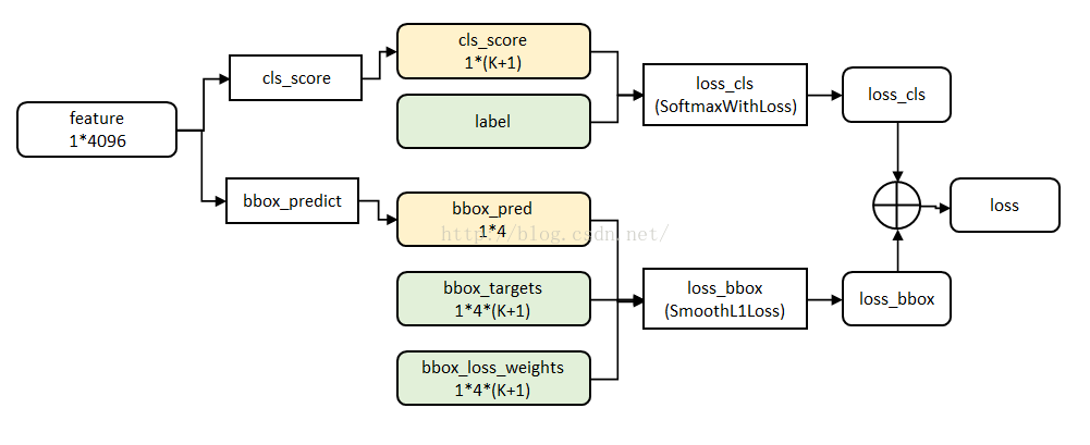 ② 损失函数使用了multi-task loss(多任务损失)函数,将边框回归直接加到CNN网络中训练。分类Fast R-CNN直接用softmax替代R-CNN用的SVM进行分类。