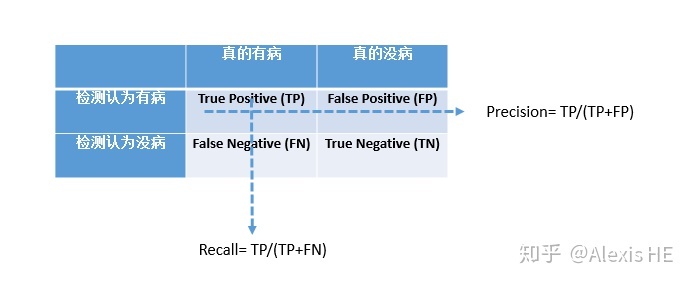 在检测是否有病的问题中,如果分类器简单粗暴的说大家都没病,那TP其实是0,那么precision和recall都是0,这样问题就会一下子暴露出来。