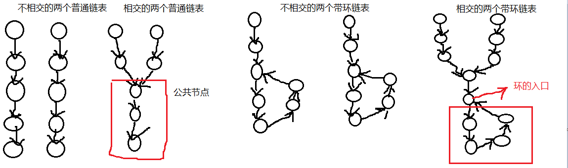 * 找到两条链表相交的第一个点,包含两条普通链表相交和带环链表相交,