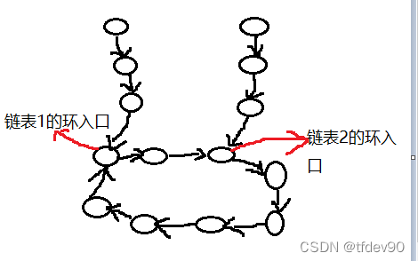 * 如果是带环链表,n1_end和n2_end是环的入口,以入口作为链表结尾,等同于两条普通链表处理