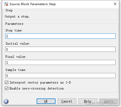 - 将 R(s) 设为阶跃信号(Step time = 2, Final value = 2),如下图。