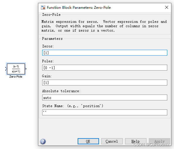 - 模块设置:以[z1 z2 ... zx] [p1 p2 ... px]的格式设置零点和极点值。