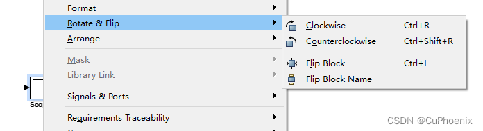 在模块上单击右键,在Rotate&Flip进行模块的旋转和镜像。操作的快捷键是Ctrl+R。
