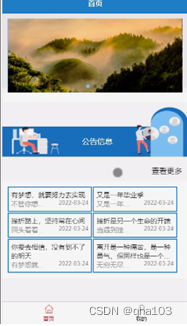 职员通过登录进入移动OA系统APP可查看首页、我的等内容,在首页还可查看公告信息等内容,如图5-8所示。
