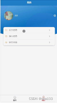 我的,在我的页面可查看用户信息、发文信息、催办信息、事务申请等内容,如图5-3所示。