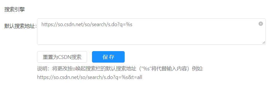 这个默认搜索地址是CSDN的,毕竟是人家开发的插件嘛,但是在设置中你可以随意更改默认搜索地址的.