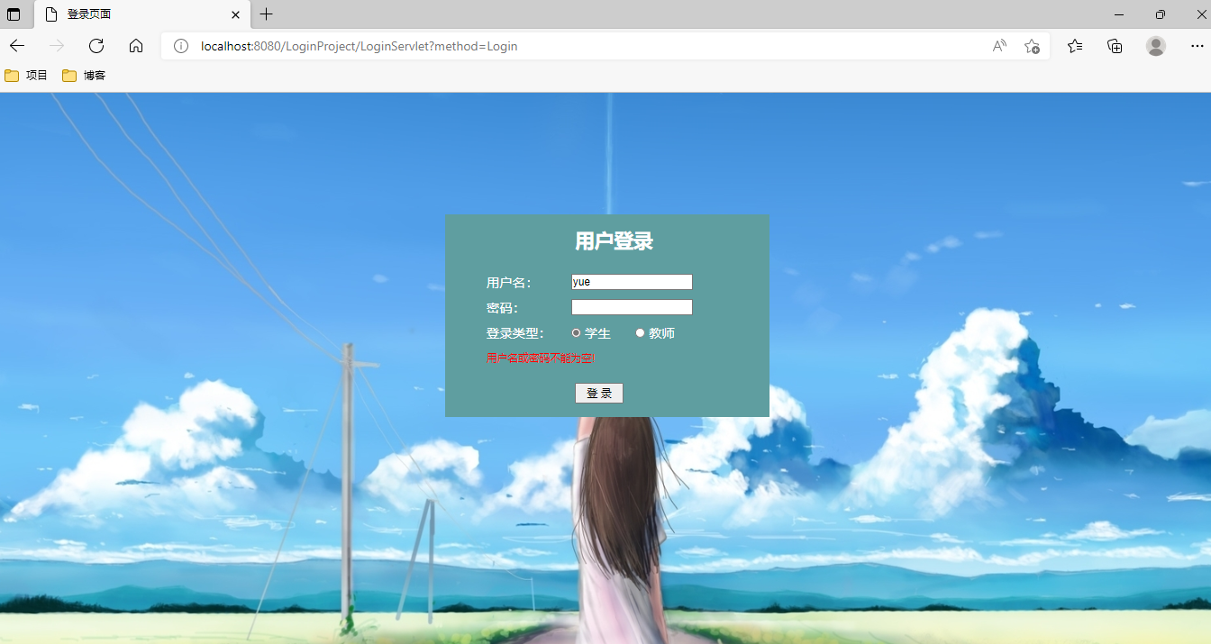 摘要:搭建了一个JAVA WEB开发的项目架子,简单实现了学生和老师同页面登录,暂时未连接数据库;用户名和密码的校验是代码中写死的。连上数据库后就可动态校验。