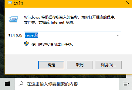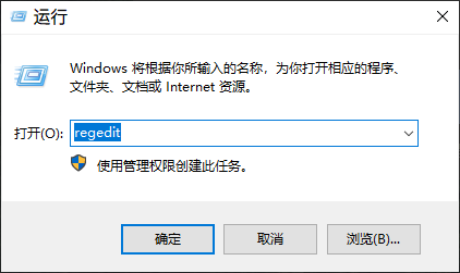- 通过组合键Windows+R,打开运行, 输入 regedit 打开注册表