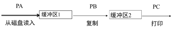 - 有三个进程PA、PB和PC合作解决文件打印问题:PA将文件记录从磁盘读入主存的缓冲区1,每执行一次读一个记录; PB将缓冲区1的内容复制到缓冲区2,每执行一次,复制一个记录; PC将缓冲区2的内容打印出来,每执行一次打印一个记录。缓冲区的大小等于一个记录大小。