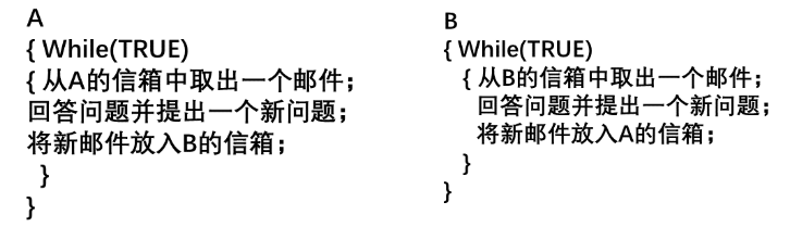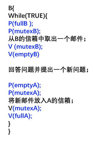 Semaphore mutexB=1;//B信箱放信件与取信件的互斥