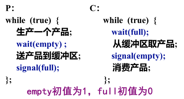(1)消费者想要取产品,有界缓冲区中至少有一个单元是满的。