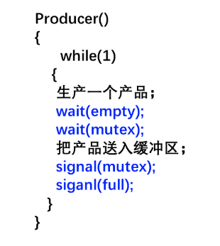 (2) 生产者想要放产品,有界缓冲区中至少有一个是空的。