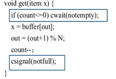 对于条件变量notfull和notempty,分别有两个过程cwait和csignal对它们进行操作: