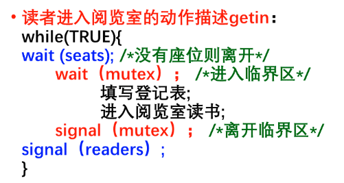 seats表示阅览室 是否有座位(初值为100,代表阅览室的空座位数) ;