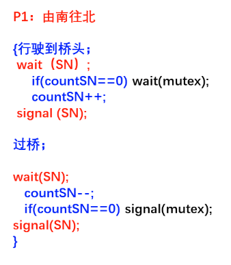 设置countSN和countNS表示由南往北、由北往南已在桥上行驶的汽车数目,初值为0