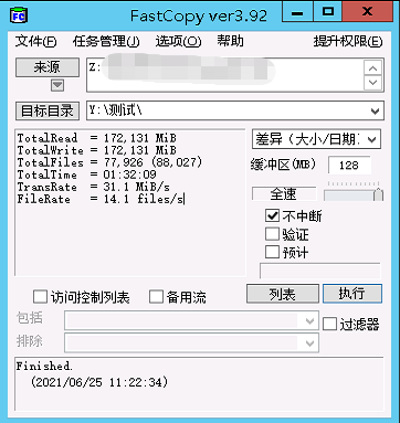 工作中需要从服务器拷贝10T数据,使用Fastcopy进行测试。