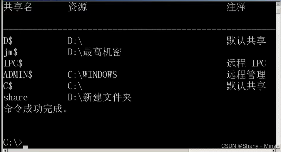 (共享名是你共享出去时的名字,别人只能看到共享名,看不到原名)
