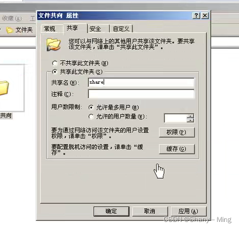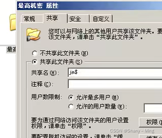 ? 3.文件夹右键属性--共享--开启共享--设置共享名--设置共享权限