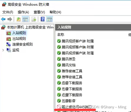 方法2︰禁止被访问445,配置高级安全防火墙-入站规则(在win7及以上系统,win2008及以上系统)