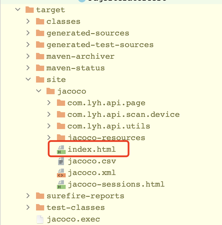 不出意外测试成功,就可以在工程target/site/jacoco/index.html 查看测试报告