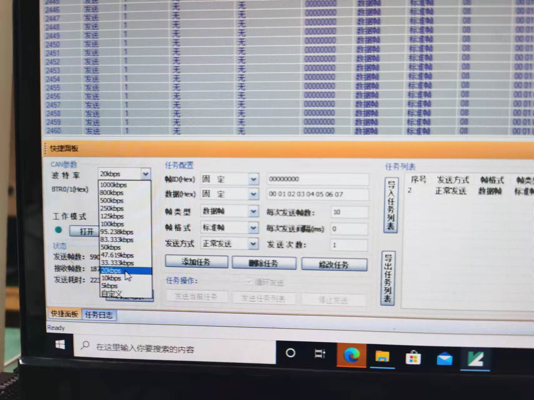 所以它10k和5k的波特率测试不通 ,如果有如下波特率,需要重新选择低速的minipiceCAN卡