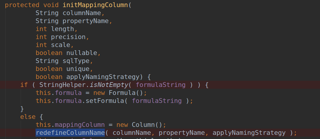 前面解析注解的时候,不论@Column注解是否存在并且定义的name是不是空,只要进入redefineColumnName方法,都会调用这段代码: