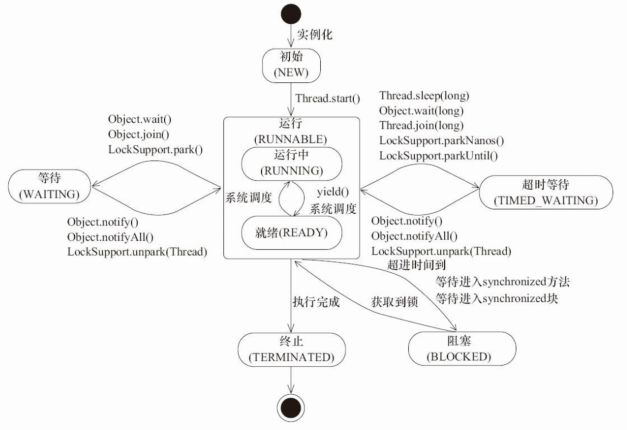 BLOCKED、WATING、TIMED_WAITING 状态,⾄于这些状态的细分,我们以后再详解;
