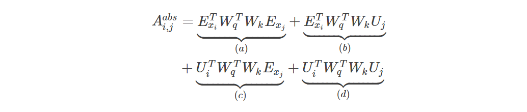 在标准的Transformer里,同一个segment的qi和kj的attention score可以这样分解: