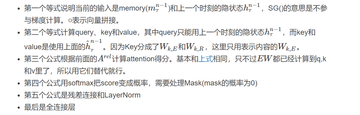 Transformer-XL 的实际实现方式与上式有所不同,但思想是类似的。