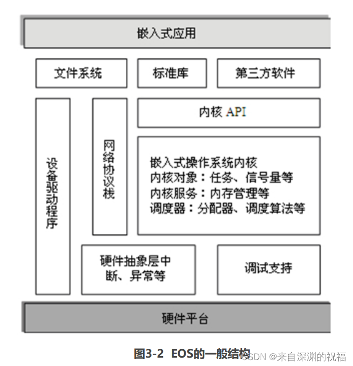 嵌入式操作系统(Embedded Operating System,EOS)由操作系统内核、应用程序接口、