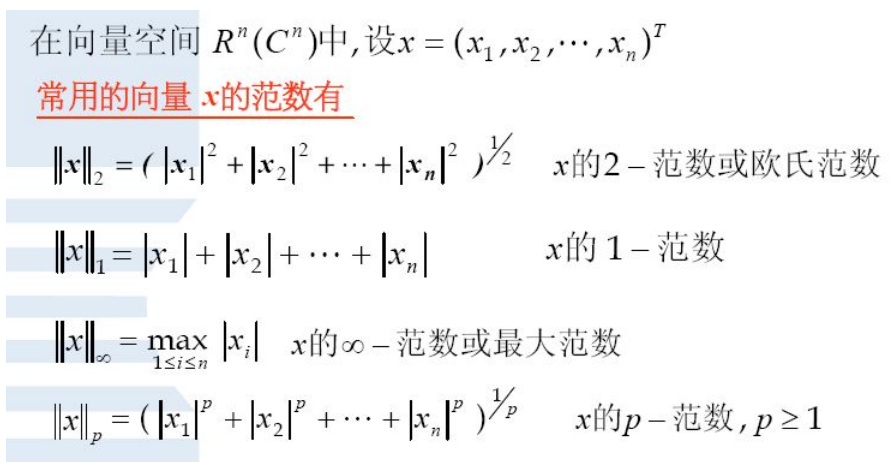 无穷范数:当p无穷大时,范数的值接近于绝对值最大的分量。