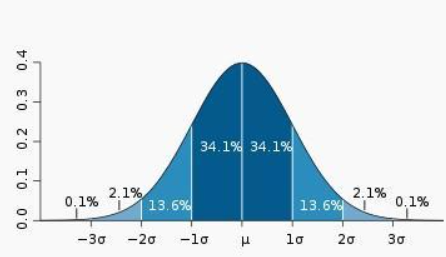 标准化后的数据并非全部在[0,1]之间,数据在空间中的分布服从标准正态分布,大部分数据落在标准差1以内,还有大量的数据分布在1之外。