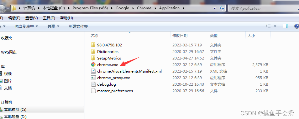 2)找到chrome.exe ,选中,右键,重命名,随便改一个名字,如a.exe