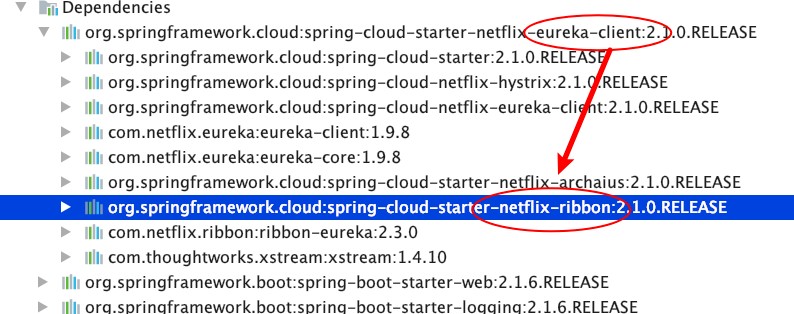 Greenwich.RELEASE 版本的 Ribbon 相关Jar在 eureka-client jar中