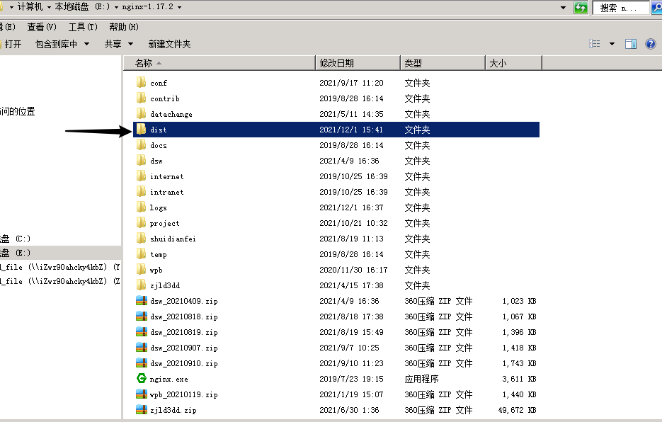 将dist文件复制,这里的dist是我自己命名,判断是哪个文件夹,可以点开文件夹,看目录下是否含有index.html文件,就是那个文件夹