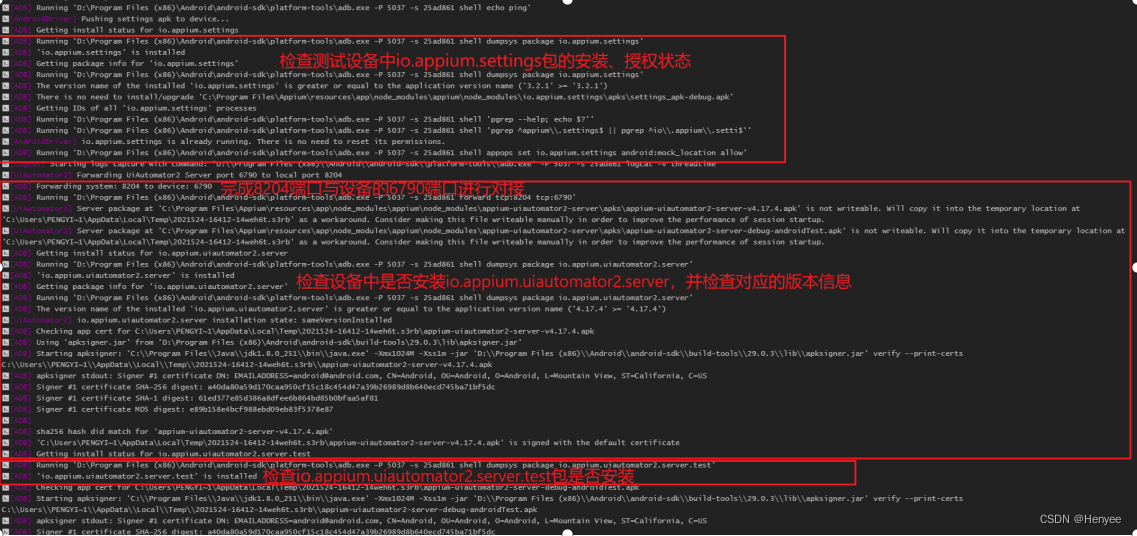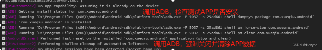如desired capabilities中,设置的automationName为UIAutomator2,appium会调用appium-uiautomator2-driver,同时将uiautomator2 server的两个apk安装到测试设备上